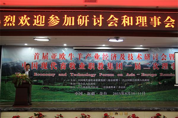 8月10日—11日,首届亚欧牛羊产业经济及技术研讨会暨中国现代畜牧业职教集团一届二次理事会在新疆奇台县召开。农业部畜牧业司副司长王俊勋、教育部职业教育与成人教育司农村处处长刘杰、中国牧工商(集团)总公司总经理薛延伍出席会议并讲话。学院党委书记曲国庆出席大会并主持科技创新与社会服务委员会会议。中国现代畜牧业职教集团成员单位代表、有关亚欧国家驻华机构人员和美国、荷兰、爱尔兰等国内外畜牧兽医领域的企业、教育、研究机构代表共计250余人参会。