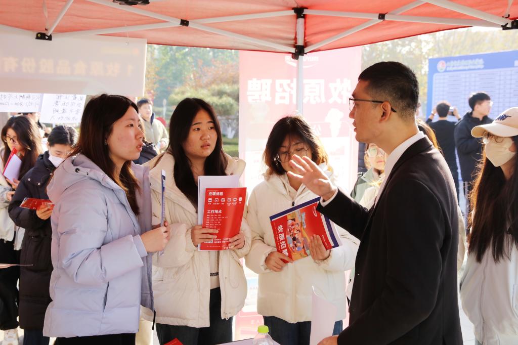 2026届毕业生徐国彤,在双选会现场选定了牧原股份有限公司。她说从大一开始就有了比较明确的发展方向,在校期间通过老师的深入指导,以及参加多场企业宣讲,加深了对行业和公司的了解,坚定了求职目标,所以这次应聘很顺利。