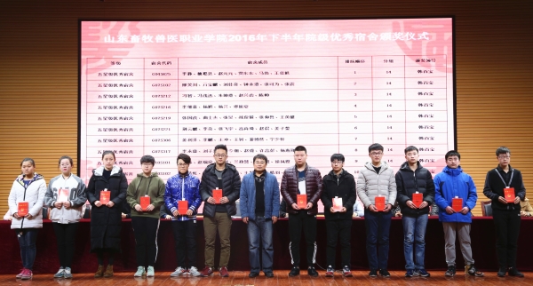 为进一步提升学院公寓管理水平,发挥先进引领作用,近期,团委学生处结合《学生工作简报》、物业安检成绩和各系部班主任值周检查成绩,评选出了47个五星级优秀宿舍,55个四星级宿舍,78个三星级优秀宿舍,并于2016年12月30日在图书信息中心报告厅举行了颁奖仪式。(团委学生处 供稿)