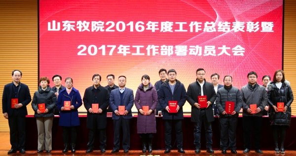党委副书记徐建义宣读了《山东省农业厅关于表彰全厅先进集体、先进个人的通报》和学院党委《关于表彰2016年度先进集体和先进个人的通报》。院领导为获奖集体个人颁奖。