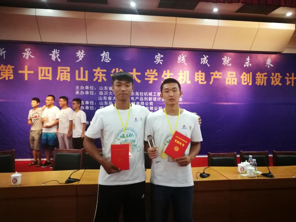 8月6日—8日,由山东省教育厅主办的第十四届山东省大学生机电产品创新设计竞赛决赛在临沂举行。我院荣获一等奖。