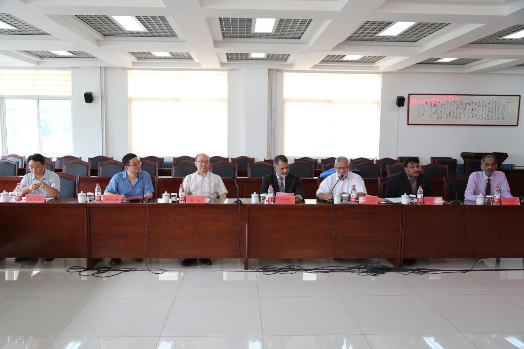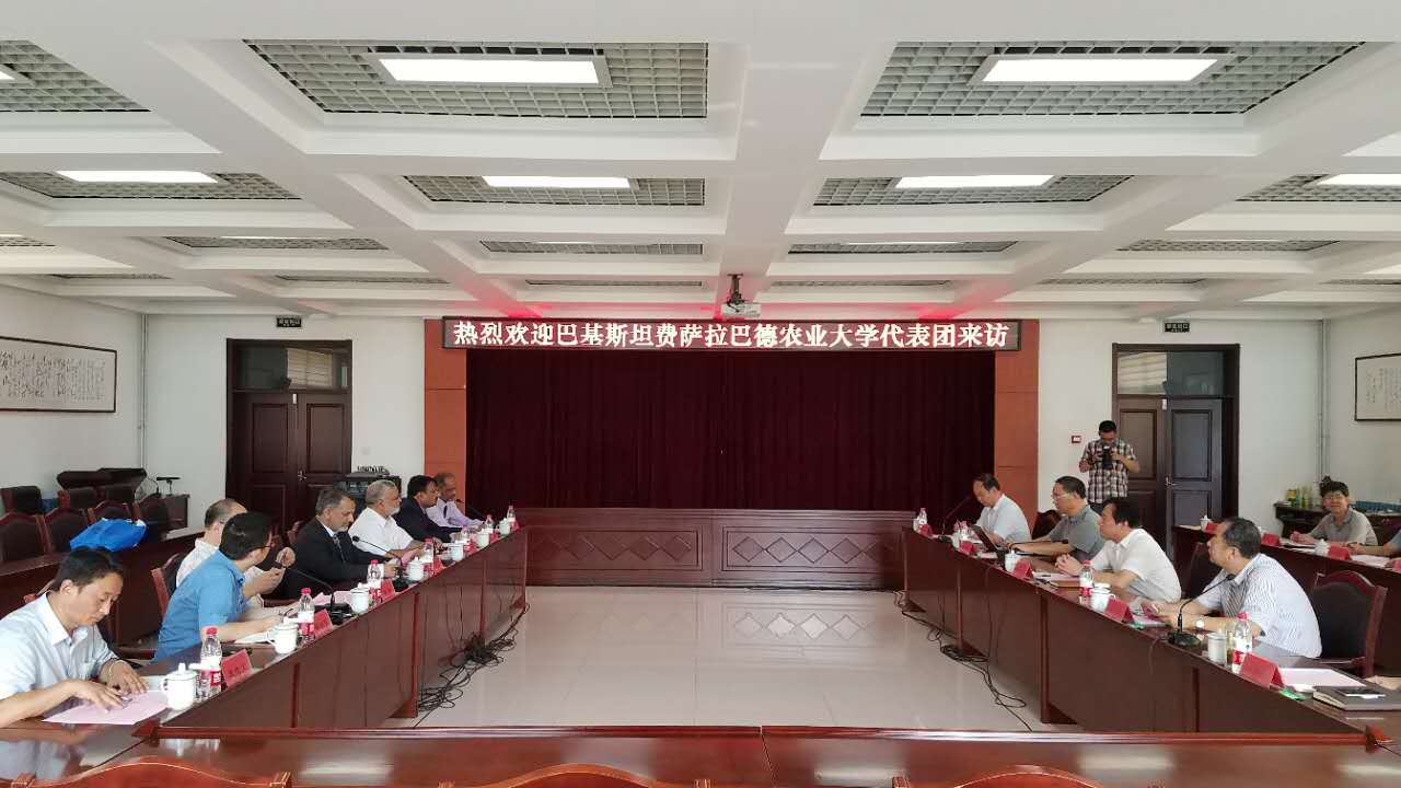 郑立森院长、张绍秋副院长与阿瑞尔·汗、默罕默德·萨贾德·汗、扎法尔·伊克巴尔·库雷希、默罕默德·阿斯拉姆就合作事宜进行充分探讨。在热烈坦诚的交流中,双方就教师交流、科研合作、学生交流等达成共识,还就中巴驴产业合作事宜进行了论证。