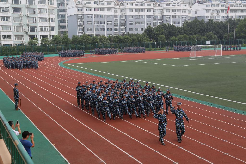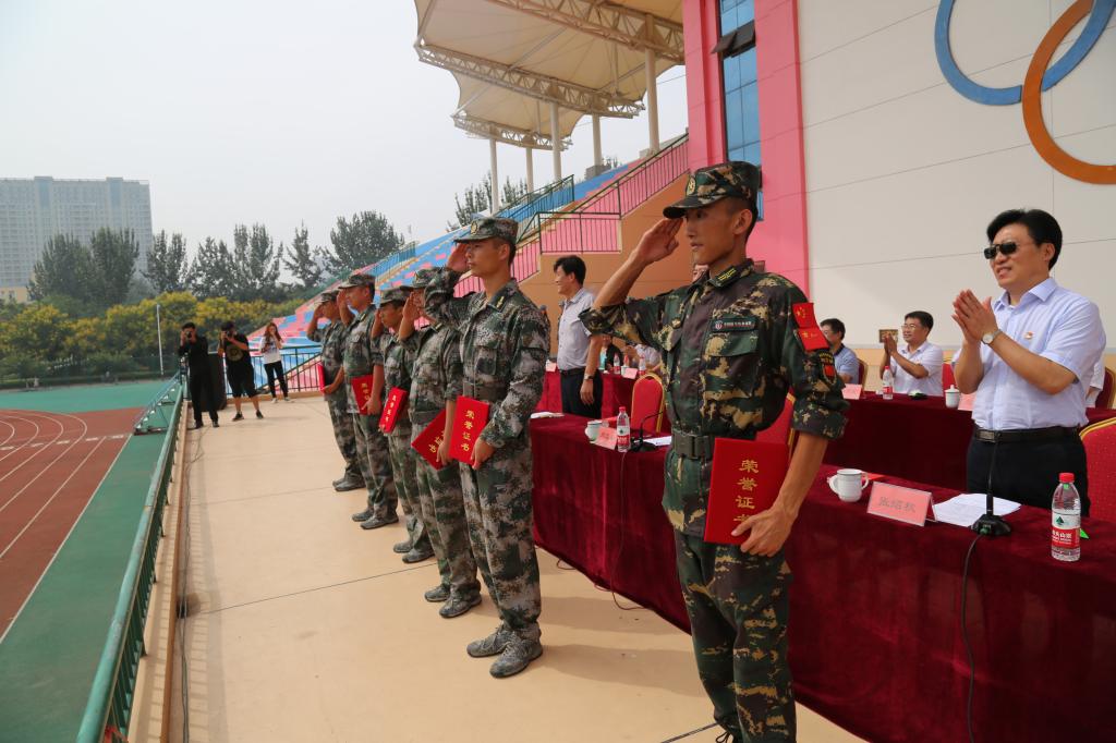在庄严的奏唱国歌、迎军旗仪式后,郑院长在军训教官陪同下,检阅了各方队。分列式上,各方队步伐整齐、军姿威武、口号响亮、士气高昂,依次通过主席台,接受师生检阅,充分展示了训练成效,赢得热烈掌声。