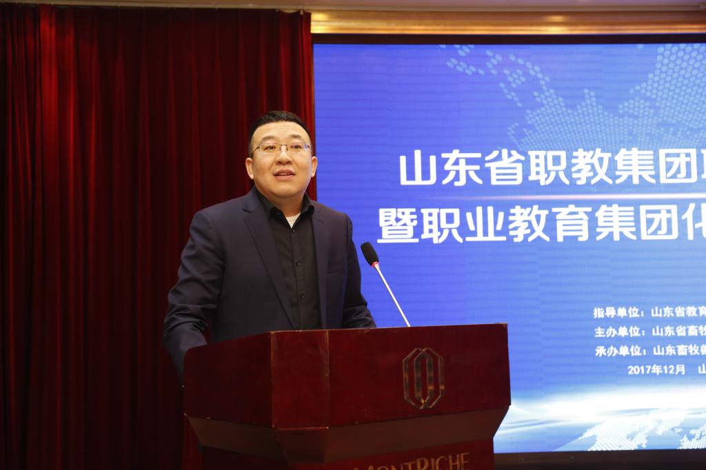 联盟理事长、学院党委书记郑立森在表态讲话中指出,山东省职教集团联盟的成立,是山东职教界的喜事、盛事。担任联盟理事长更是联盟成员单位对自己、对学院、对山东省畜牧职教集团的信任。当前,职业教育进入新时代。新时代有新任务、新目标、新发展、新气象,联盟成立正逢其时,任重道远。下一步,联盟将在省教育厅领导和指导下,扎实推进职业教育集团化办学内涵建设。通过政、校、行、企四方联动,积极探索办学主体多元化的体制、顺畅灵活的运行机制,夯实合作平台,整合多方资源,推动教育教学改革,创新人才培养模式,提高育人质量,打造高水平的职业教育集团品牌。遵循章程,建立健全“三会议、一平台、一报告”工作机制:实行轮值理事长工作制度,每年定期召开全体理事会议、常务理事会议、秘书处会议等;发挥山东省职业教育集团化办学服务中心平台作用;撰写山东省职教集团化发展报告;积极参与全国职业教育集团化办学各项工作,助力山东职教集团化办学事业和现代职业教育发展,为山东省经济文化强省建设,做出积极贡献。